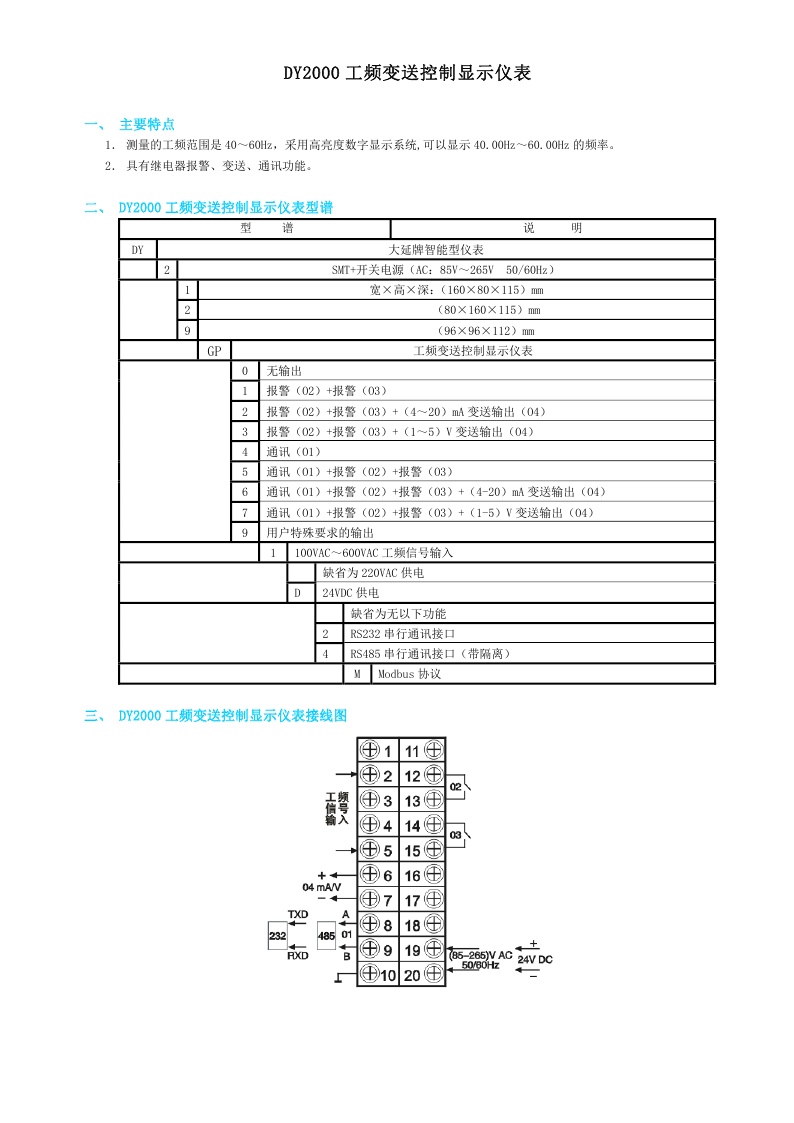 DY2000(GP)工頻變送控制顯示儀表