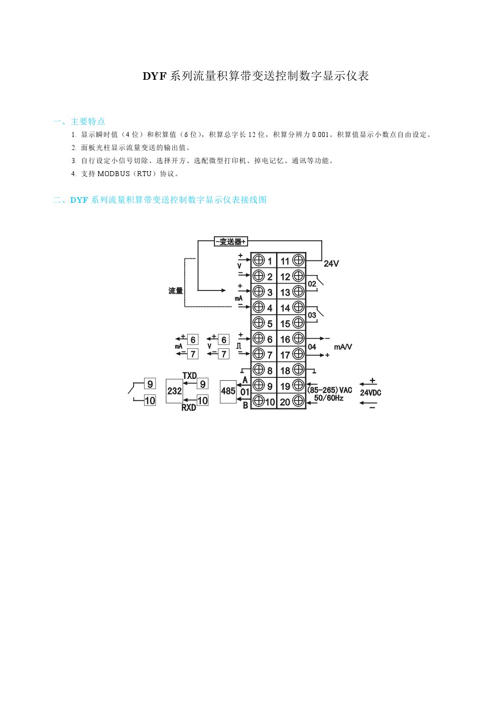 DYF系列流量積算帶變送控制數(shù)字顯示儀表