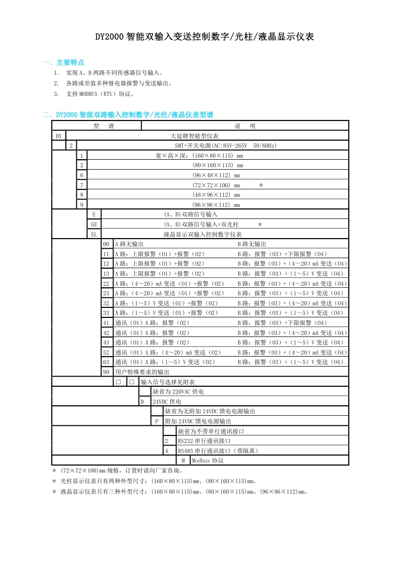 DY2000(E)智能雙輸入變送控制數(shù)字/光柱/液晶顯示儀表